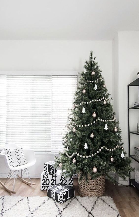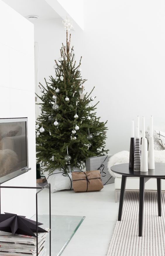Adding a layer of white fluff (literally) like a shaggy rug can be a game-changer for minimalist holiday decor. The best thing is that can find these items around your home or in any home decor store without trolling the “merry” isles. The texture will be a welcome addition to your minimalist Christmas spirit.